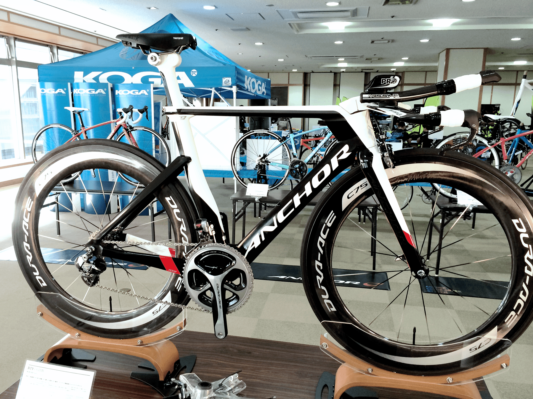 先日、アンカーの展示会に行ってきました。アンカーでは、日本のロードレース界を底上げにはTTバイクが必須とのことから、今回タイムトライアルバイクを開発しました。