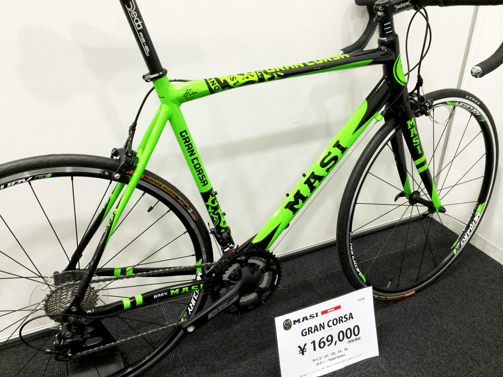 MASIの新製品です カーボンロードの他にも、同じデザインのお手頃なアルミバイクがありました。 写真をよ~く見ると・・・ コンポは105とFSAのミックスです。 最低限のレーススペックは持っていますね。 そして、この価格であれば、最初の1台にはベストなバイクでしょう。