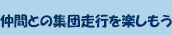 集団走行の目的は、順番に一人ずつ先頭を走行し、風圧の負担を分散することで、走行効率を上げ、集団の速度を一定の高さで維持し続けることです。また、事故を避けることにも繋がります。